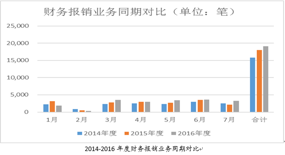 经过全体财务人员连续12个工作日的高强度工作,7月1-15日完成了财务报销业务达到了3,271笔(接近了历史全月最高工作量),比上年7月全月完成量(2,152笔)多1,119笔,增长了52%,圆满完成了各单位、部门送达财务处的财务报销业务。