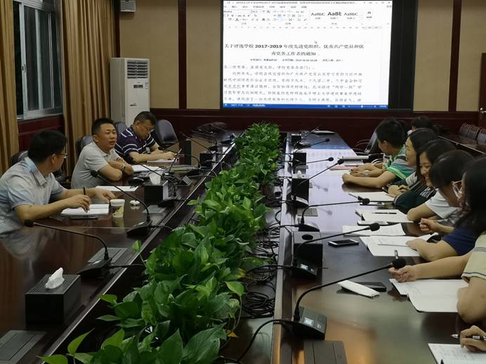 周克海同志传达了评选学校2017-2019年度先进党组织、优秀共产党员和优秀党务工作者的通知。大家积极讨论,一致推荐何斌同志为优秀共产党员。