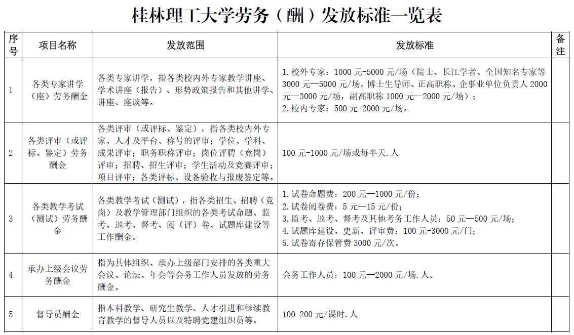 劳务(酬)发放标准